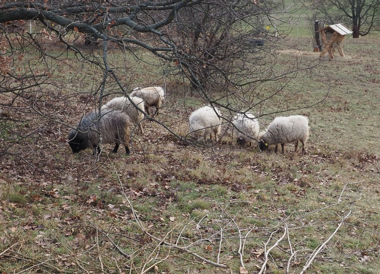 Třeba ovcím stačí ke štěstí chudá tráva na pastvině i teď v prosinci. (Na přilepšenou si tady pod dubem najdou i spadlé žaludy.)