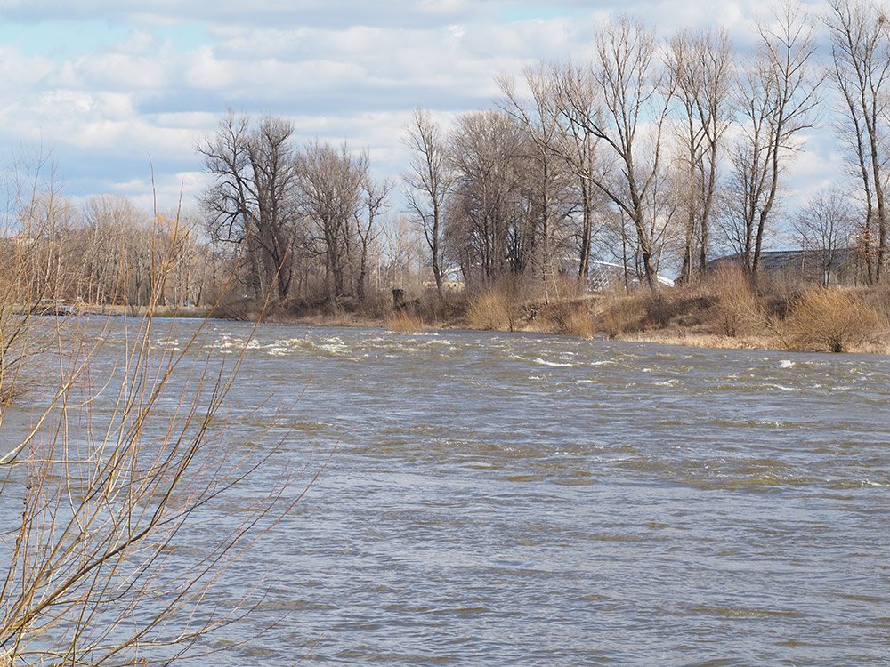 Třeba tady se při předchozí povodni řeka rozhodla, že si udělá uprostřed koryta dlouhý štěrkový ostrůvek. Byl krásný, ale málem jsme o něj přišli. Technici z povodí nechtěli řece povolit změny, a začali ostrůvek odbagrovávat. Naštěstí se povedlo takovému technickému násilí aspoň částečně zabránit, a kus ostrůvku zůstal. Nyní ostrůvek využívá mnoho vodních ptáků.