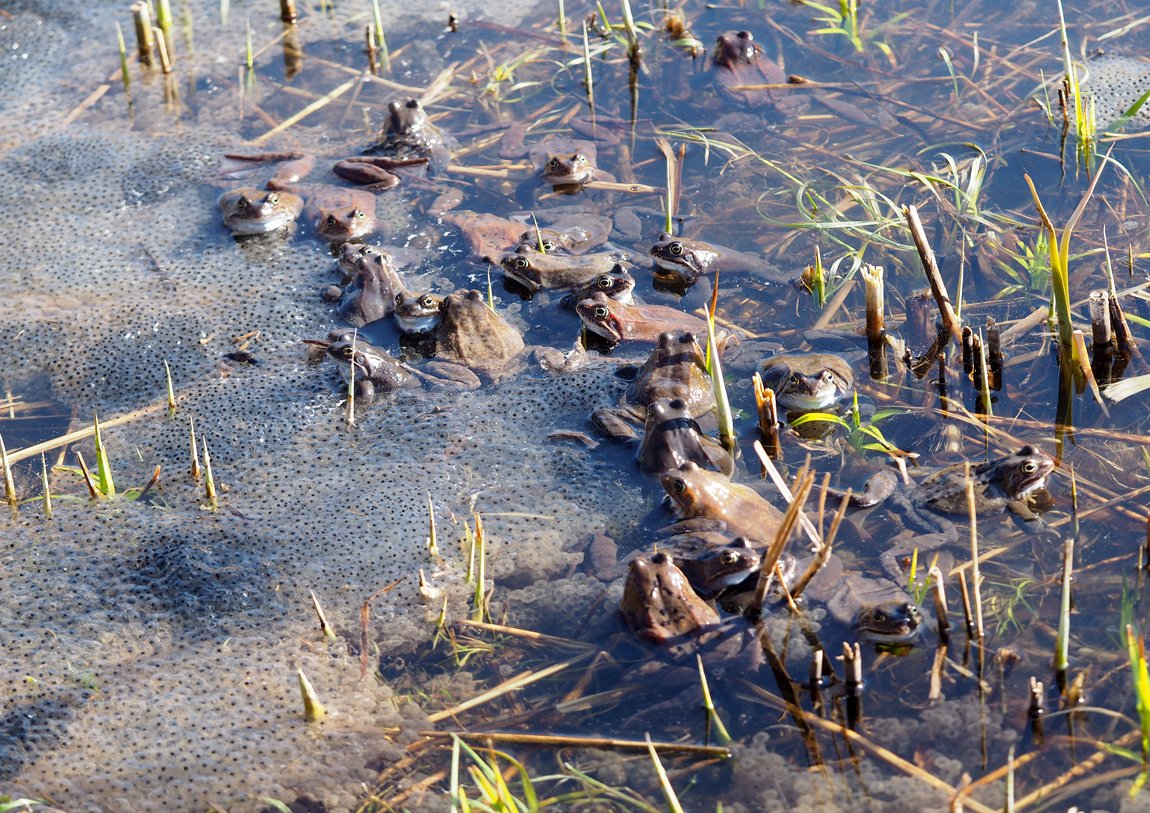 Skokani hnědí využili několik teplých dnů před koncem března a sešli se na vhodných místech kvůli kladení vajíček. Skokan hnědý (Rana temporaria) je velmi otužilý druh, je to jedna z našich nejdříve se rozmnožujících žab. Jejich rozmnožování probíhá hromadně. Nejdřív se na vhodném místě scházejí samečkové. Vyhlédnou si obvykle nějakou mělčinu, která je zarostlá vodní vegetací. Samečkové tam pak lákají samičky tak, že hromadně vydávají oznamovací hlas. Ten na člověka působí dojmem jako slabé mručení. Samičky se orientují podle volání samců a přicházejí do vody za samečky.