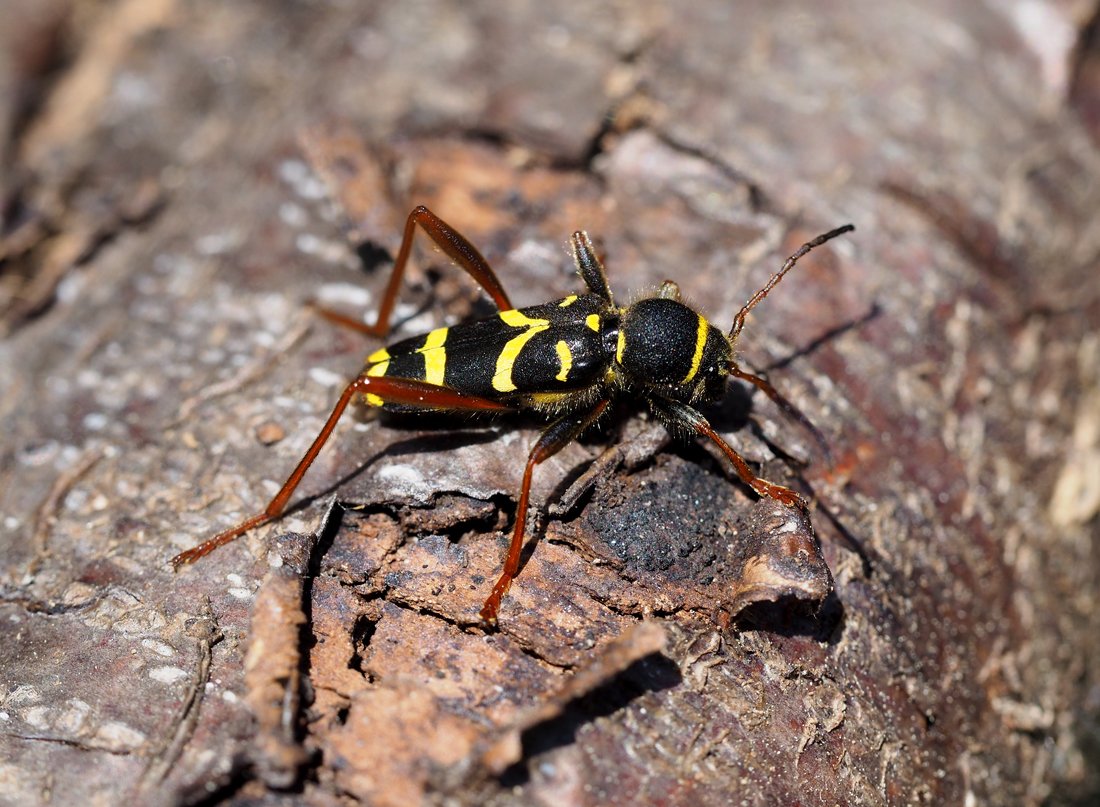 Na horních dvou fotografiích je kuloštítník beraní (Clytus arietis). To je v Čechách poměrně hojný druh. Vývoj jeho larev probíhá v odumřelém neodkorněném dřevě slabých kmenů nebo větví, trvá obvykle dva roky, někdy tři roky.