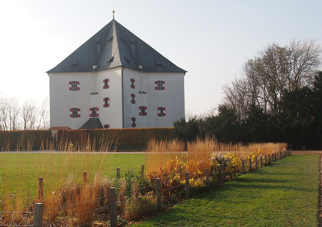 Pohled na letohrádek Hvězda přes nebezpečný porost.